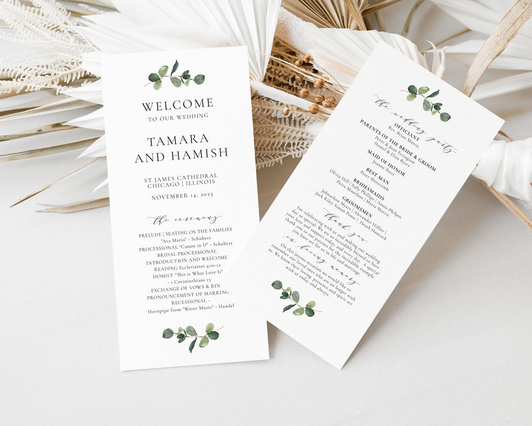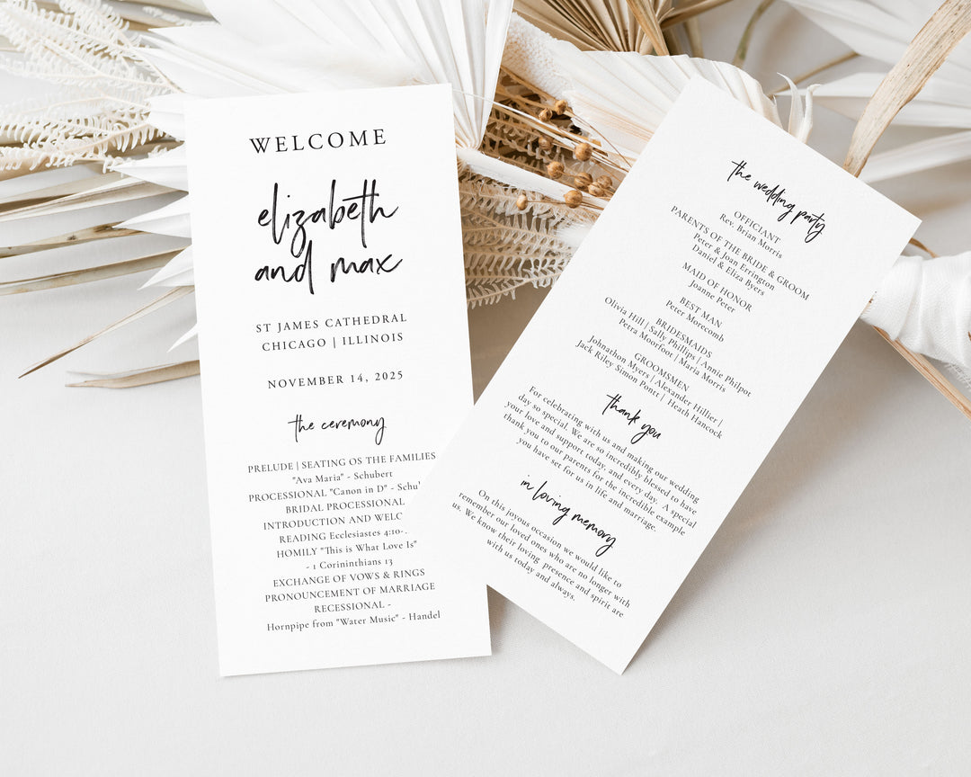 Sleek and modern, our double-sided Tea Length Wedding Ceremony Programs fit all your important information whilst still being a discreet size. Customized to suit your event and create a gorgeously cohesive day.