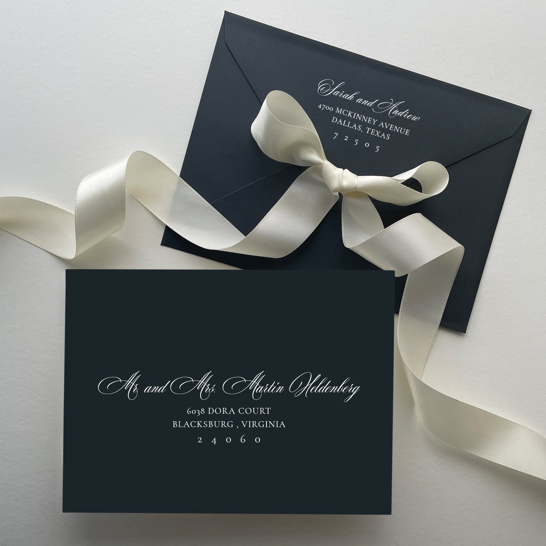 This romantic White Ink Envelope from the Besotted Collection is timeless. With gorgeous calligraphy and a classic, legible serif font.