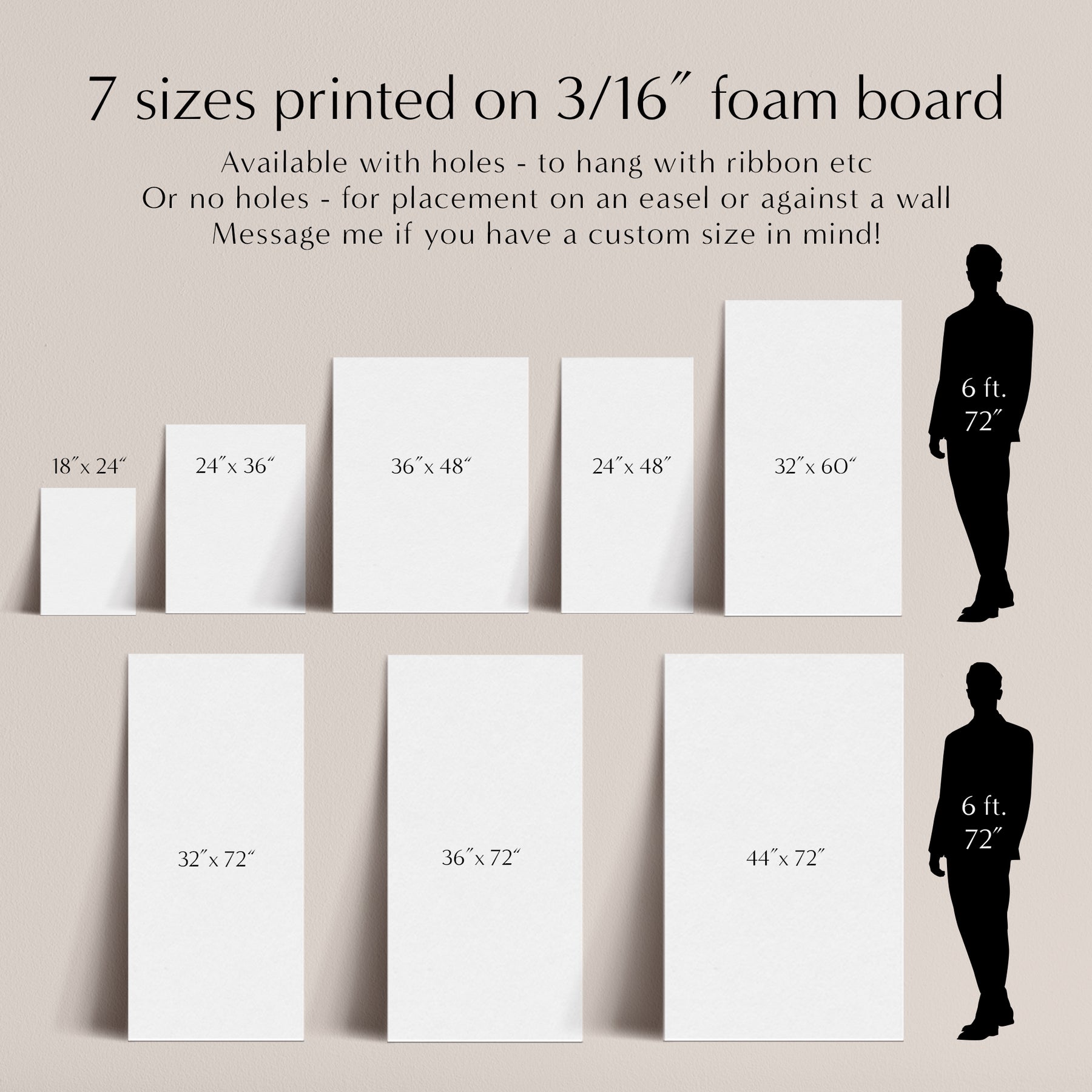 - Printed on 3/16" foam board (ideal for placement on an easel), or hanging from a frame, or leaning against a wall