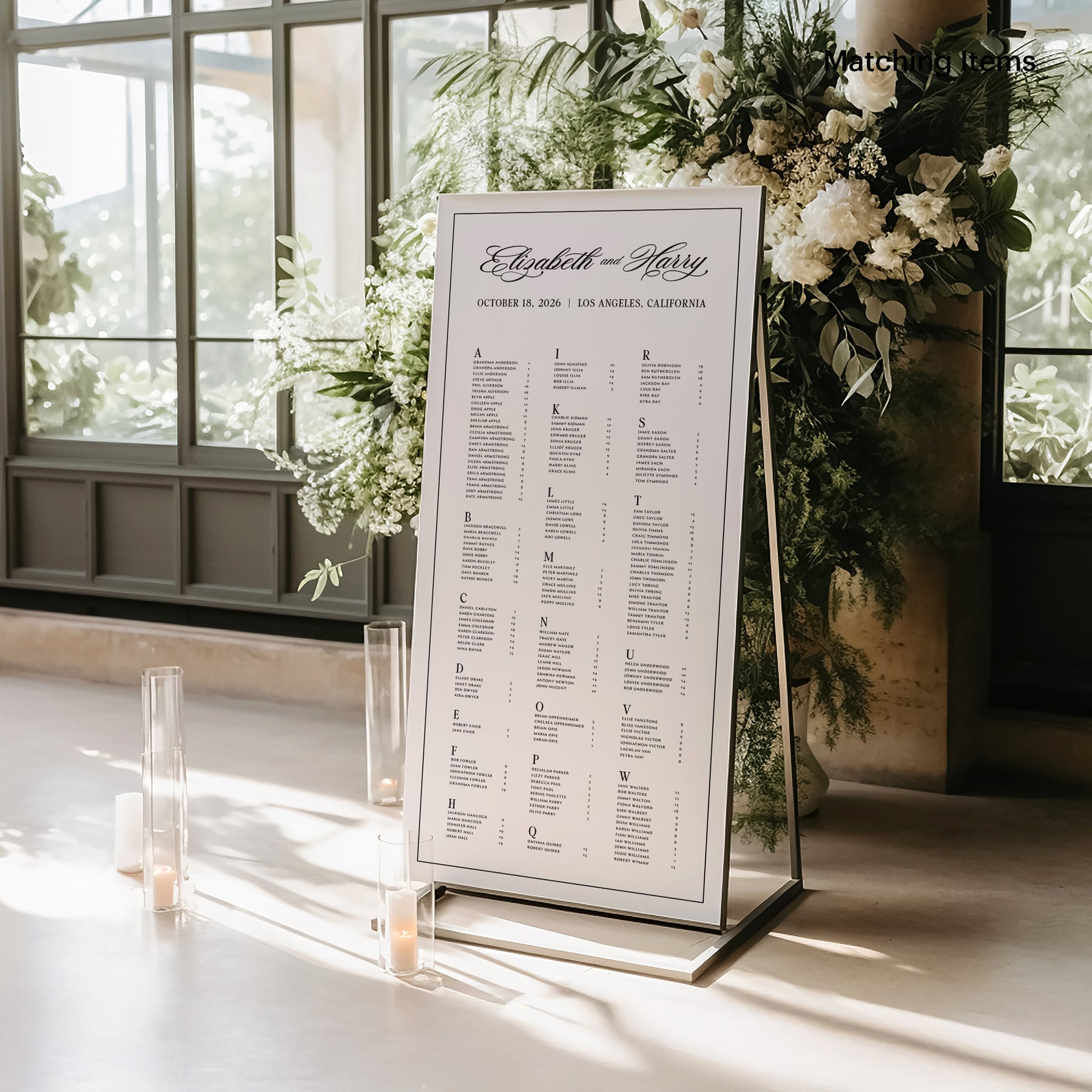 This seating chart from the Mulholland Collection serves as both a practical tool to guide your guests to their table, as well as a stunning welcome statement.