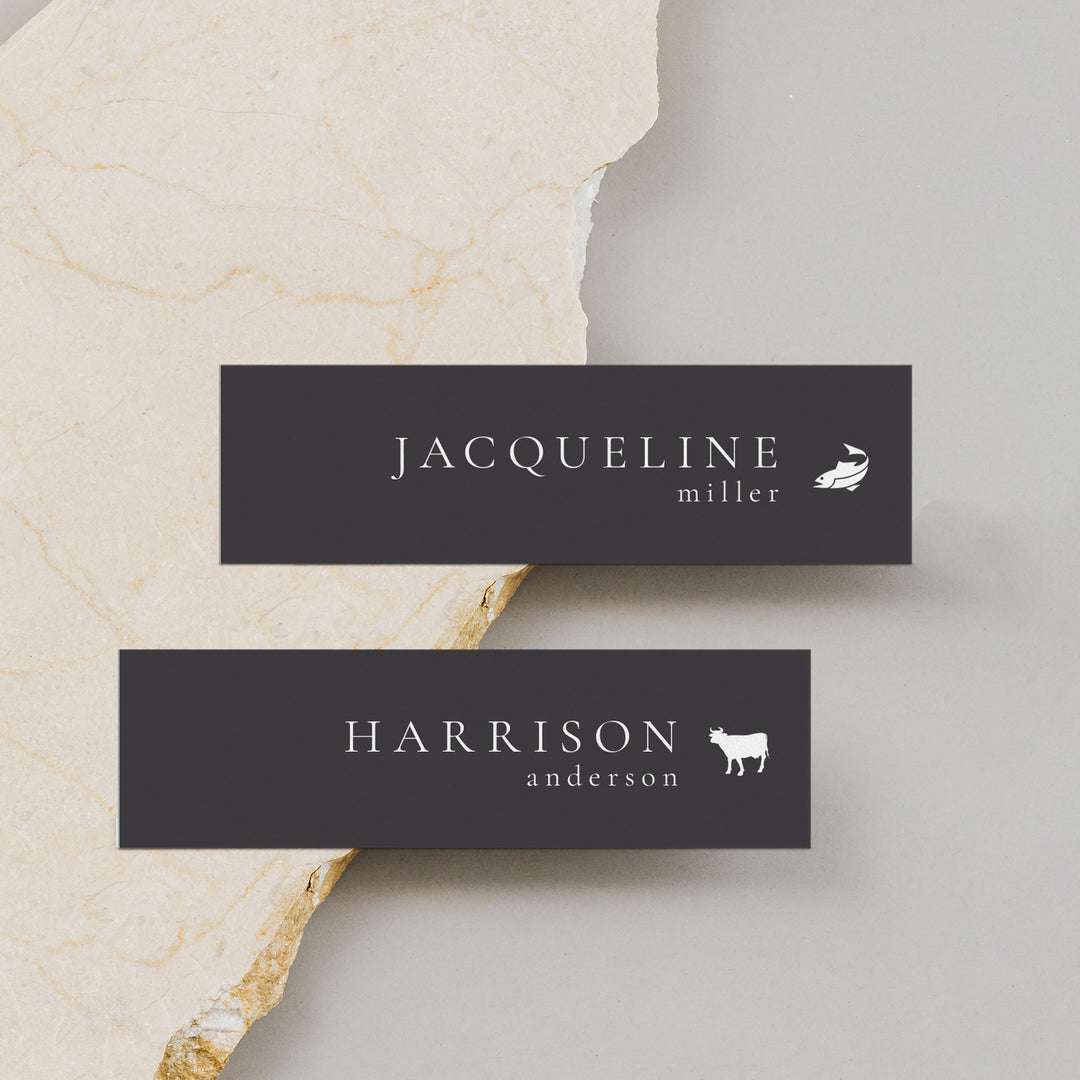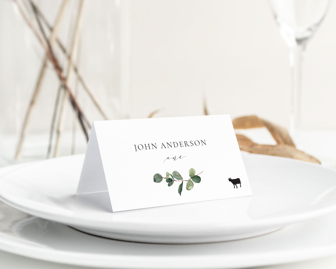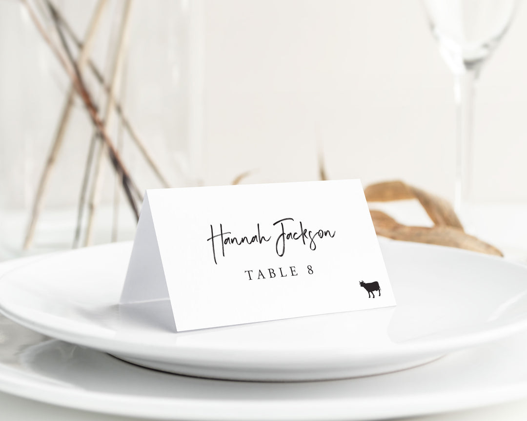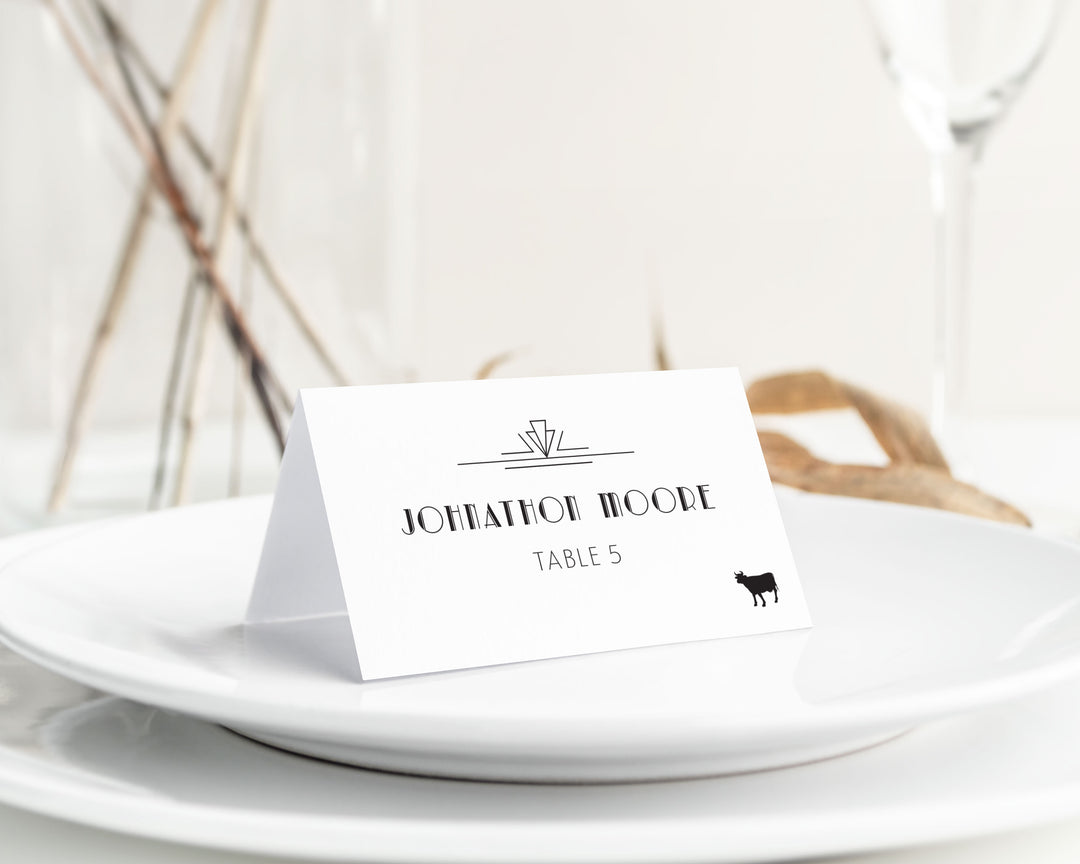Modern and elegant, our Place Cards are also very practical. Meal choice icons can be added for the venue staff. We are always happy to create a custom food icon for your more unusual wedding menu selections. If you prefer no table number or meal choice, just let us know!