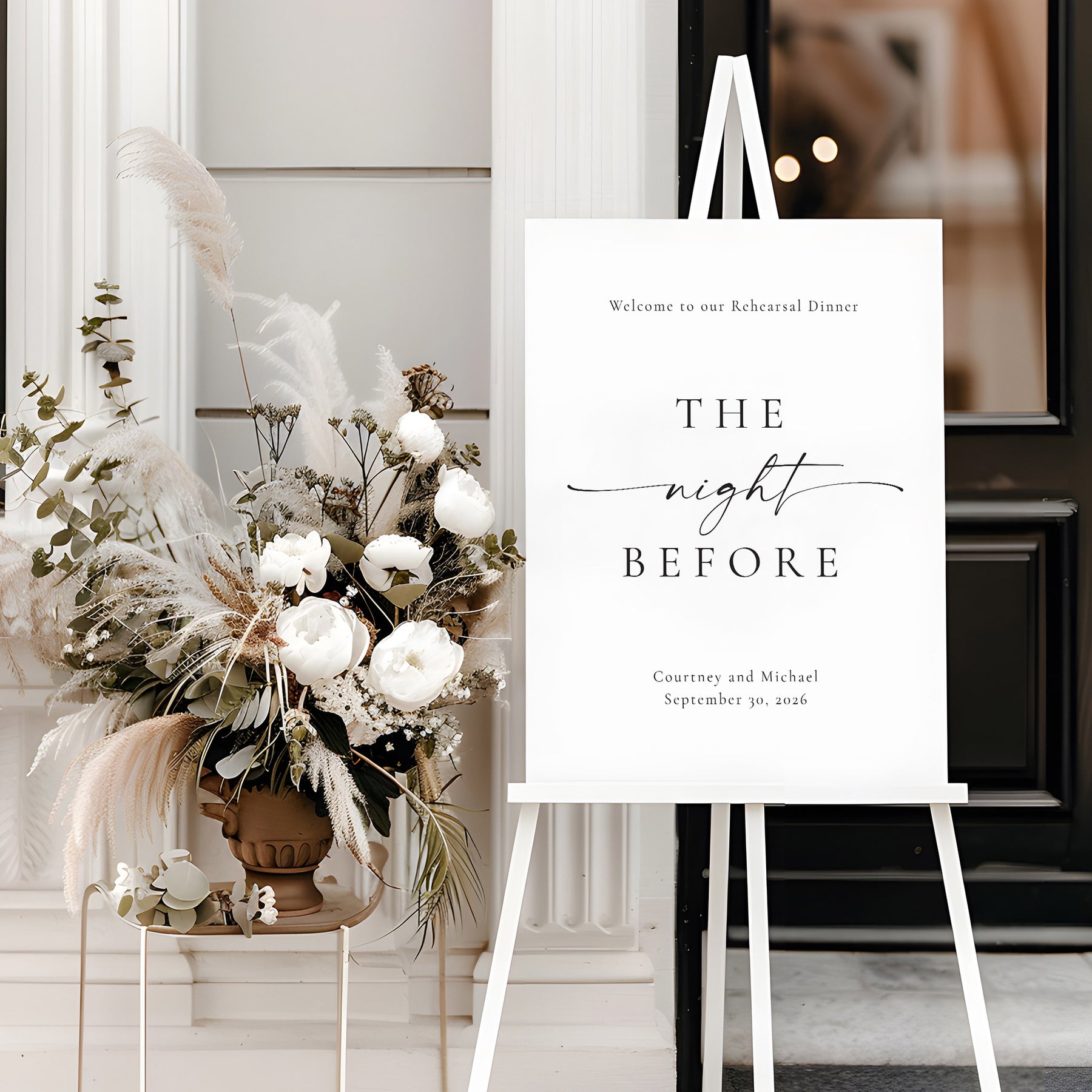 Welcome your guests in style with our "The Night Before" Rehearsal Dinner Sign from the Simply Modern Collection. Cool and timeless, all at the same time!